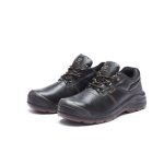 - Black leather upper, steel toe cap & lace-up closing